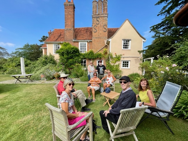 group of people relaxing in garden chairs